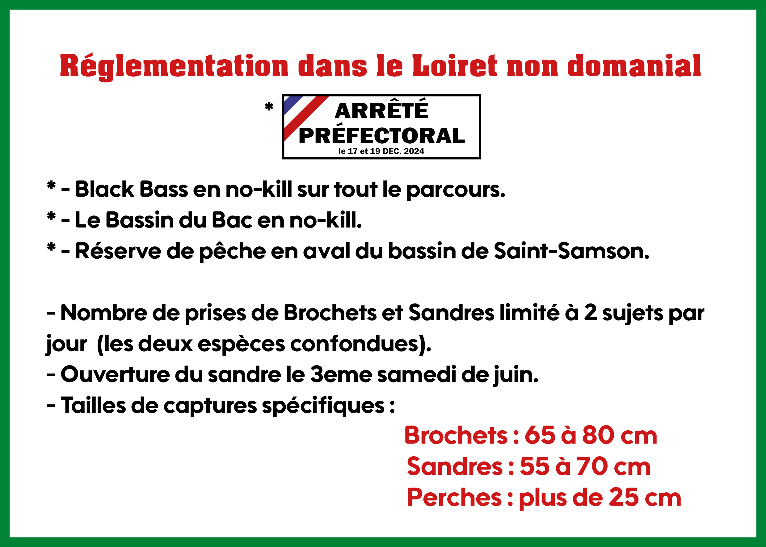 1 – Arrêté préfectoral instituant un parcours de graciation du Black-Bass sur le Loiret depuis le parc floral (Orléans) jusqu’à la chaussée de Saint Santin (Saint-Pryvé-Saint-Mesmin). OUVRIR ICI