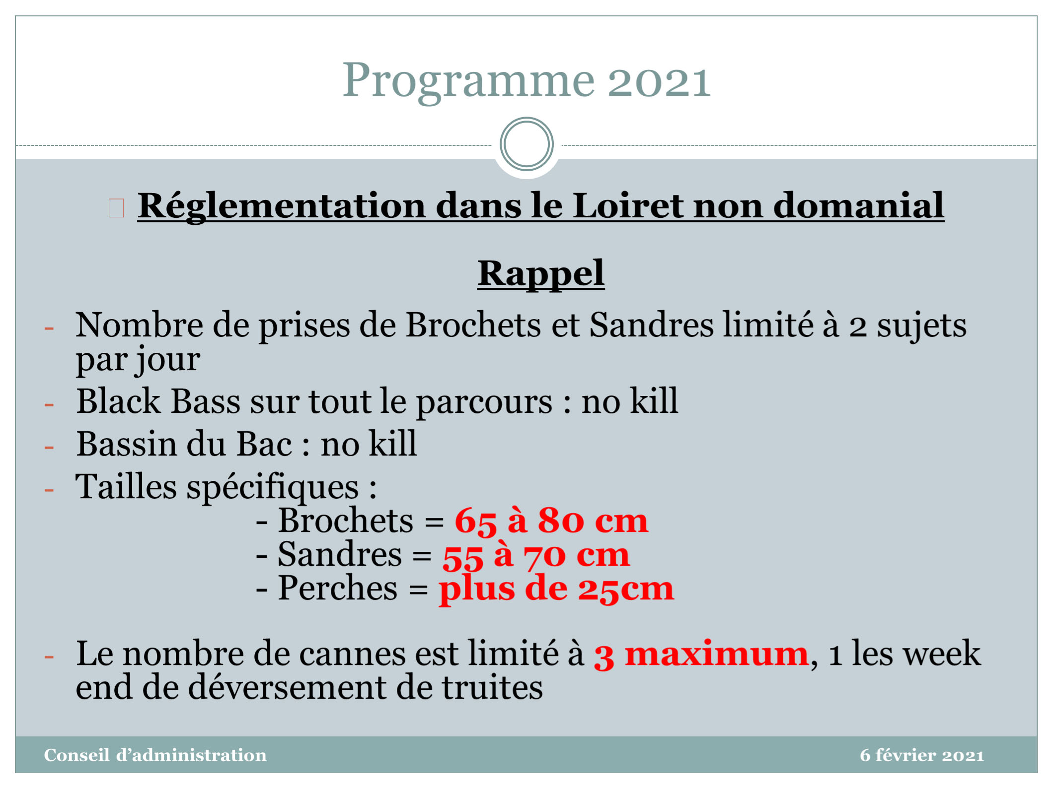 REGLEMENTATION LOIRET 2021